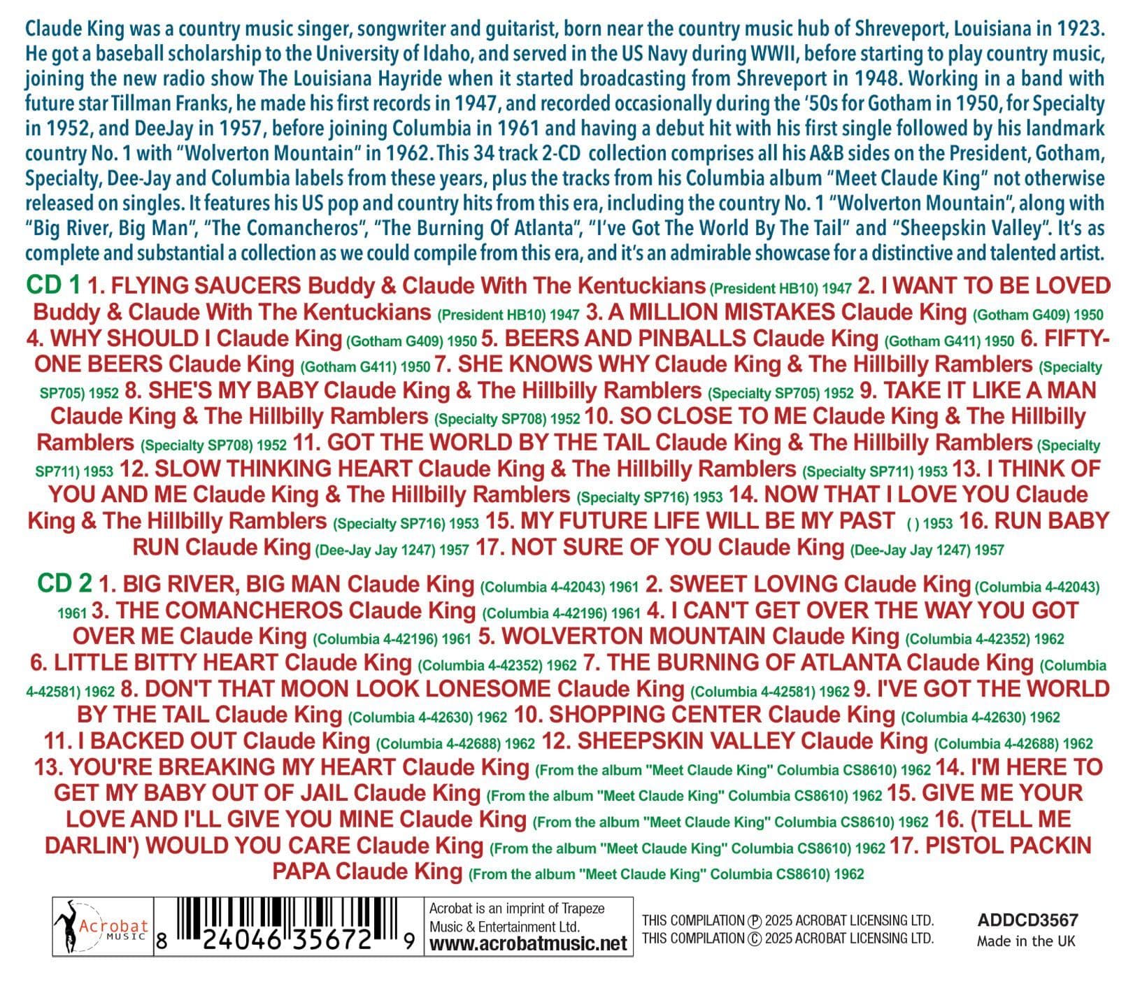 This 34 track 2-CD collection comprises all his A&B sides on the President, Gotham, Specialty, Dee-Jay and Columbia labels from these years, plus the tracks from his Columbia album “Meet Claude King” not otherwise released on singles.
